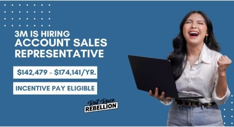 3M is Hiring: Account Sales Representative - $142,479 - $179,141/yr. Remote - Southwestern region USA.