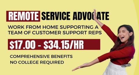 Work from Home Supporting a Team of Customer Support Reps - Remote Service Advocate - $17-$34.15/Hr., Benefits - No College Required