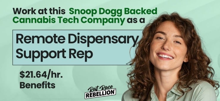 Work from home as a Dispensary Support Representative earning $21.64/hour with benefits. This remote role supports cannabis eCommerce technology at